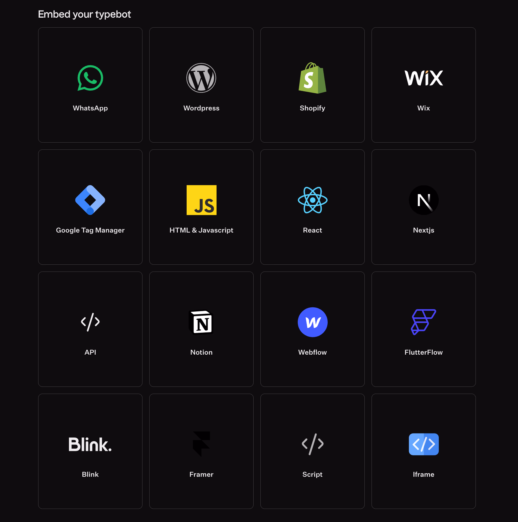 Many teams struggle to launch the bot properly. It may be "done" but not deployed, or deployed in ways that lower conversion. Typebot supports flexible publishing methods: