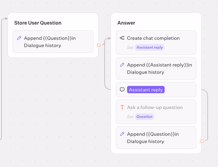 - Set variable → append the assistant's answer to